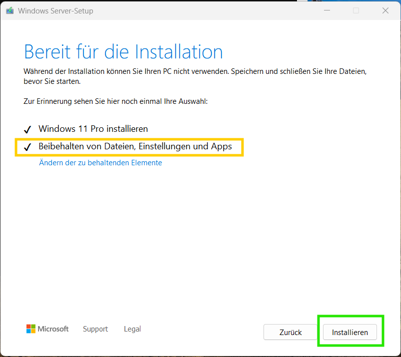 Die hier beschriebene Methode, im Gegensatz zur offiziellen mit dem "Windows Upgrade-Assitent" und der "PC-Integritätsprüfung" (die prüft, ob die Hardware die von Microsoft vorgegebenen Anforderungen erfüllt), funktioniert AUCH bei Hardware, die die Anforderungen nicht erfüllt, und das sowohl bei PCs, auf denen noch eine beliebige Version von Win10 läuft, oder aber eine ältere Jahres-Version von Win11, die bereits "illegal" installiert wurde, z.B. Win11 22H2, die jetzt aus dem Support fällt. Noch ein Hinweis: Die Installation meldet sich als "Windows Server", das tut aber nichts zur Sache, die vorher installierte Edition bleibt bestehen.